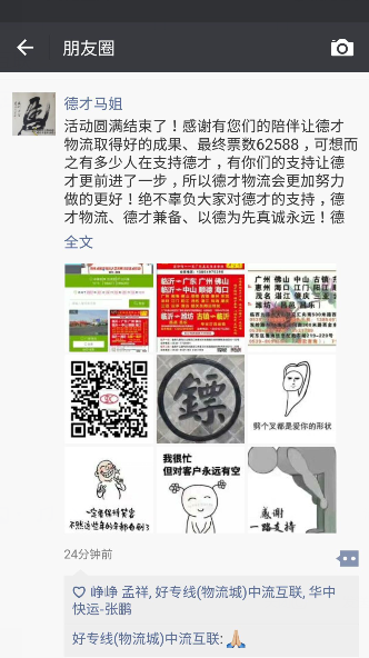 感谢有您们的陪伴让德才物流取得好的成果、最终票数62588,可想而之有多少人在支持德才,有你们的支持让德才更前进了一步,所以德才物流会更加努力做的更好!